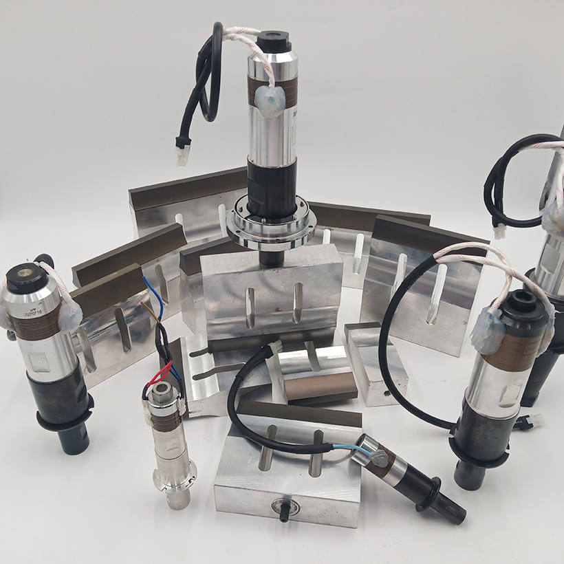 超聲波配套設備包含哪些?超聲波配件由:超聲波發生器、超聲波換能器、超聲波法蘭和超聲波模具為一組。常用于超聲波焊接機、口罩機、貼膜機等焊接機。